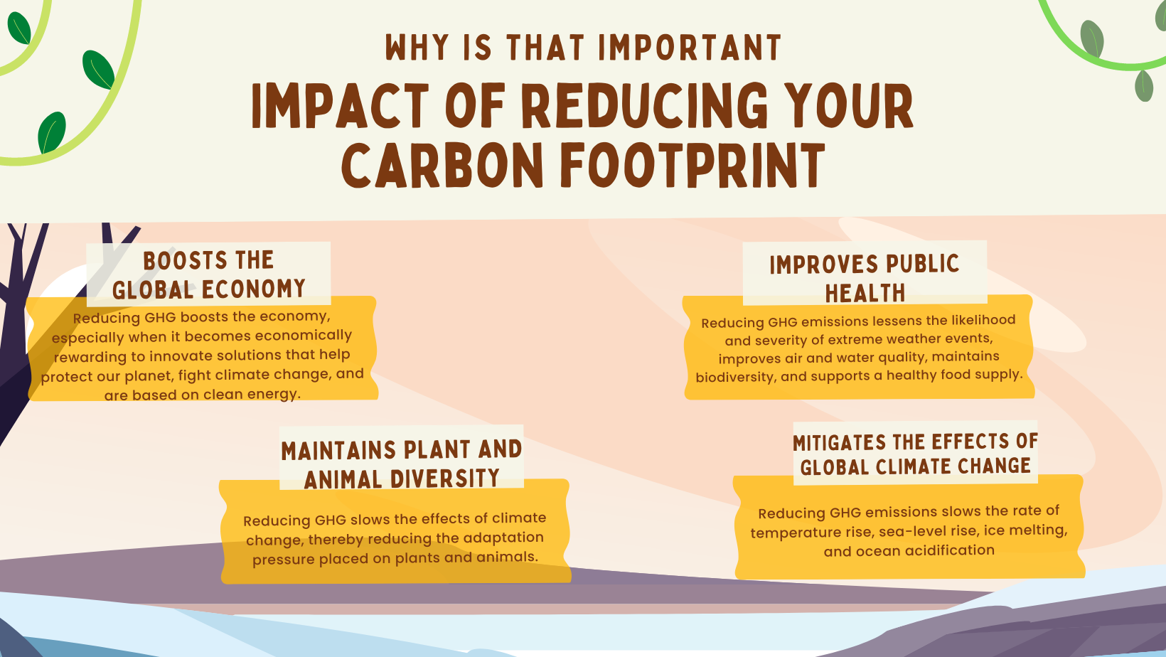 Reducing your carbon footprint is important because it mitigates the effects of climate change, which has a positive cascade effect on public health and plant and animal diversity. In addition, this boosts the global economy and leads to innovative, more environmental-friendly solutions.