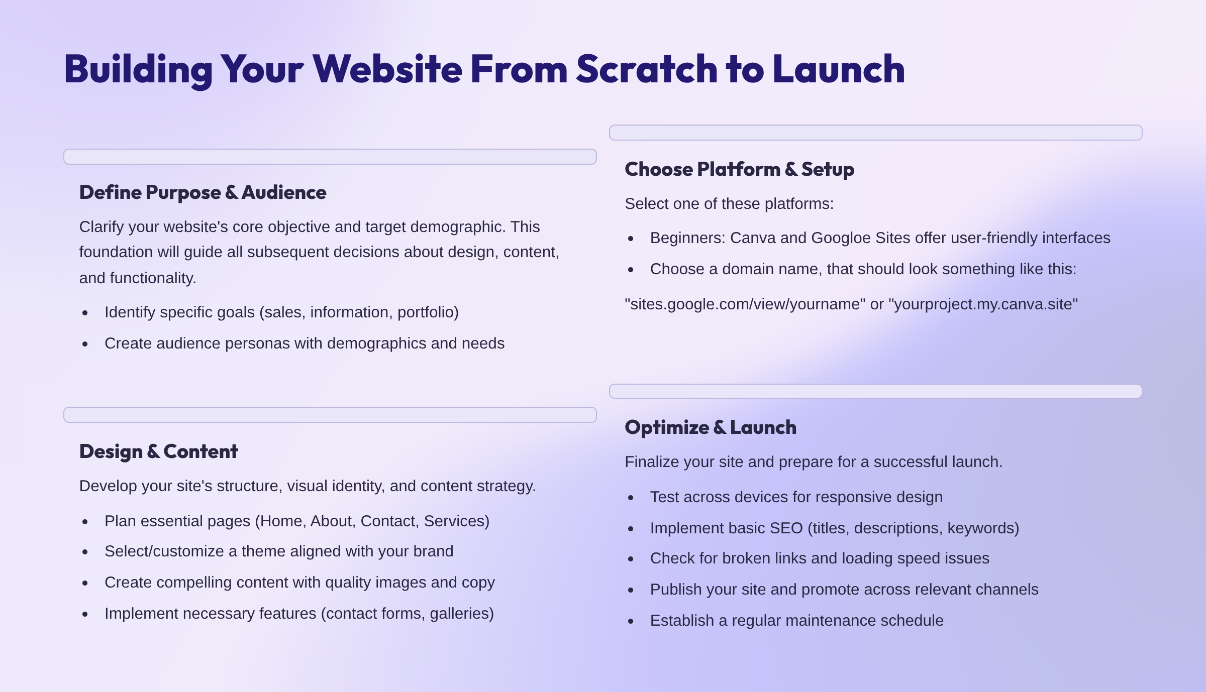 • Kies een makkelijke tool (bijv. Google Sites of Carrd).