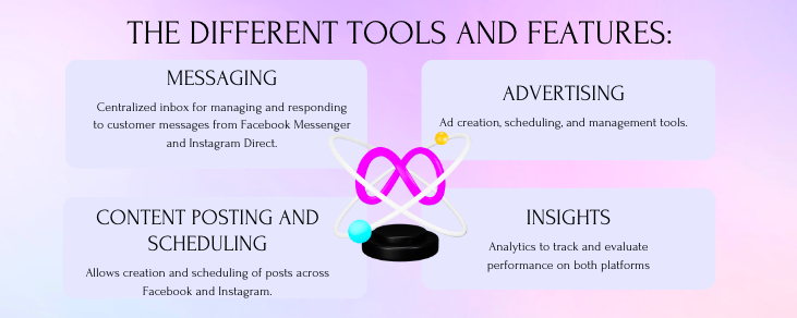 Learning the Types of Content You Can Create: The Meta Business Suite allows for creating and scheduling regular posts, stories, and promotions on Facebook and Instagram.